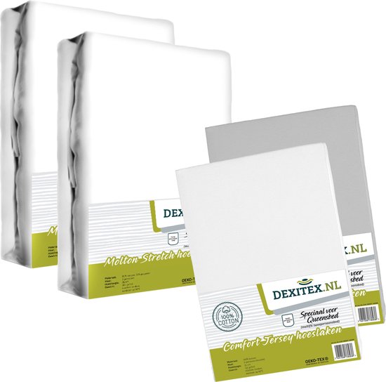 Betttextilienset Queen – 2 Moltons mit 2 Jersey-Spannbettlaken