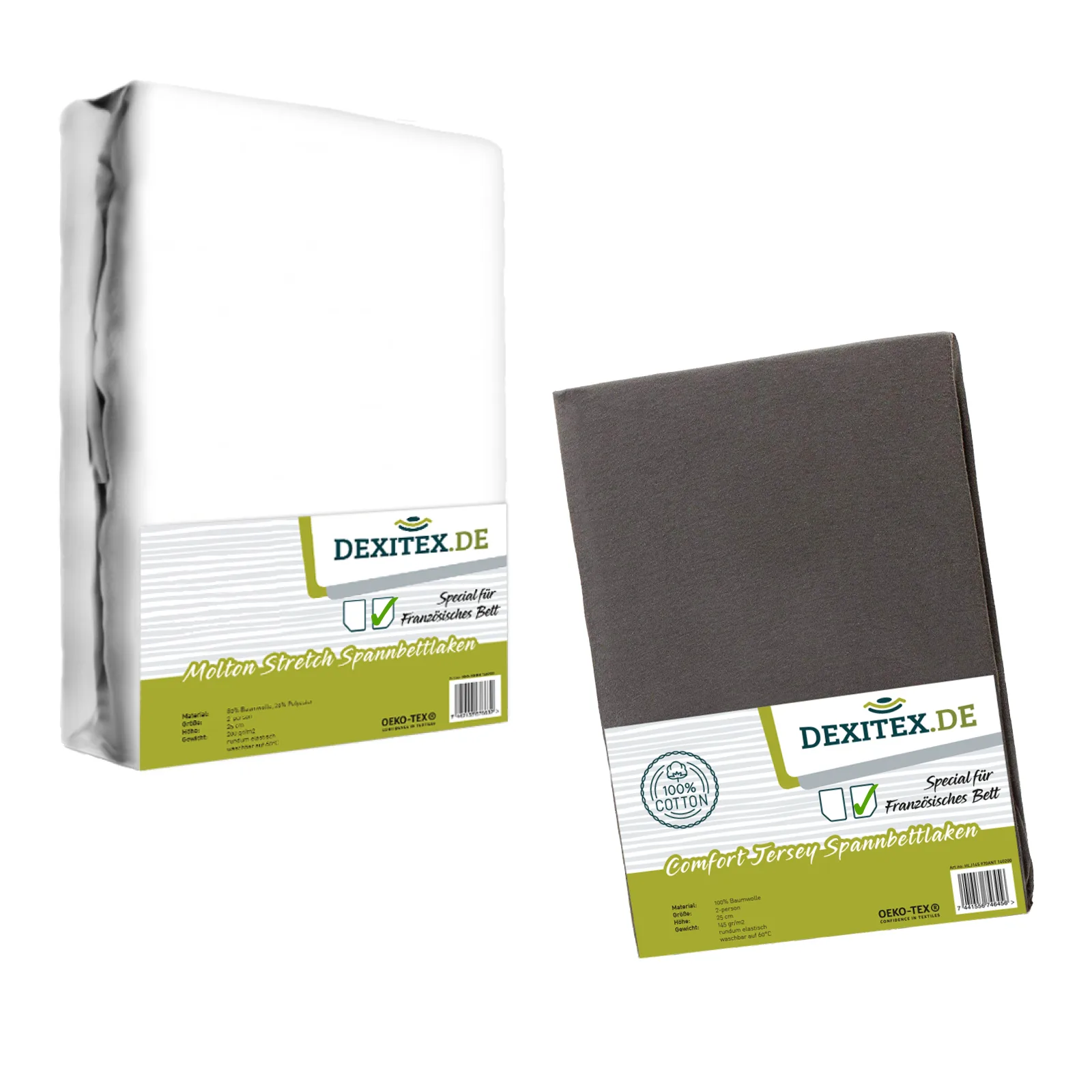Textilpaket Französisches Bett – 1 Spannbettlaken und 1 Molton – Rechts