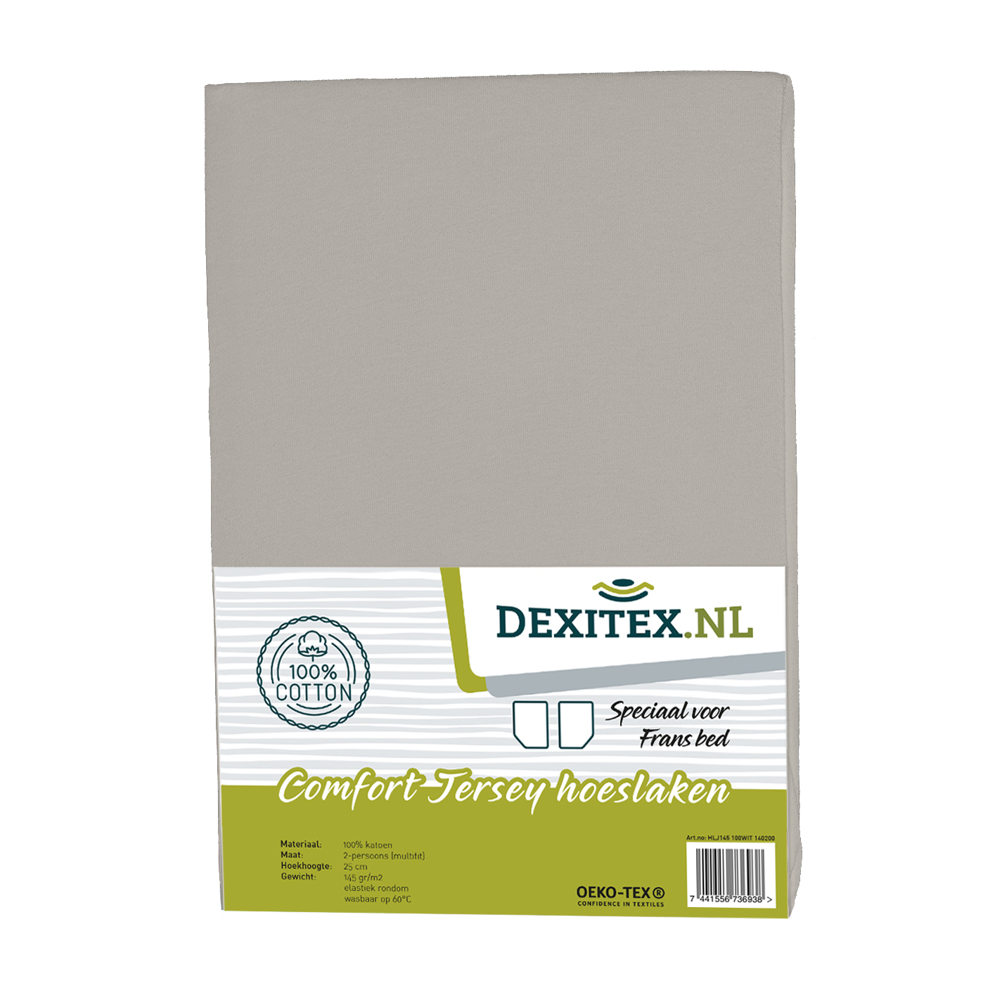 Was die Abmessungen betrifft, so haben wir diese Moltontücher mit einer MultiFit®-Passformentwickelt. Das bedeutet, dass diese Spannbetttücher/Moltons mit 3 verschiedenen Ecken hergestellt werden, so dass sie perfekt für Hubbettmatratzen/Oberdeckmatratzen mit einer Breite von 130 bis 160 cm geeignet sind, die Länge beträgt etwa 200 cm. Sehr flexibel! Wir liefern diese Jersey-Spannbettlaken in WEISS, HELLGRAU oder ANTRACITE.